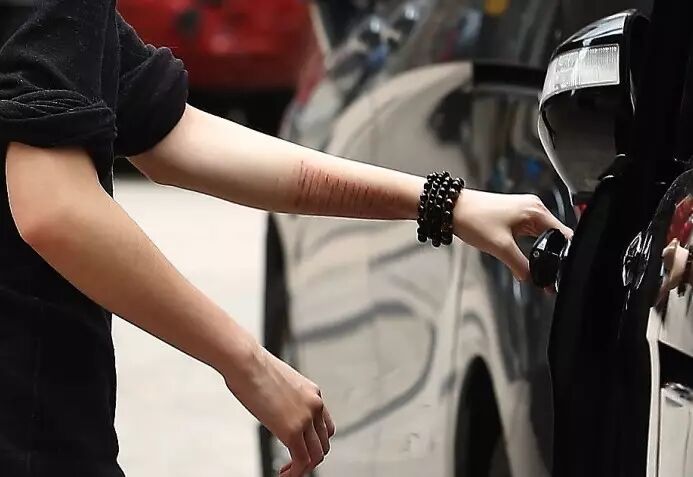 吴卓林见记者拍照时,将原本卷起的手袖不自觉拉低,只见她左手手腕有近数十条伤痕↓