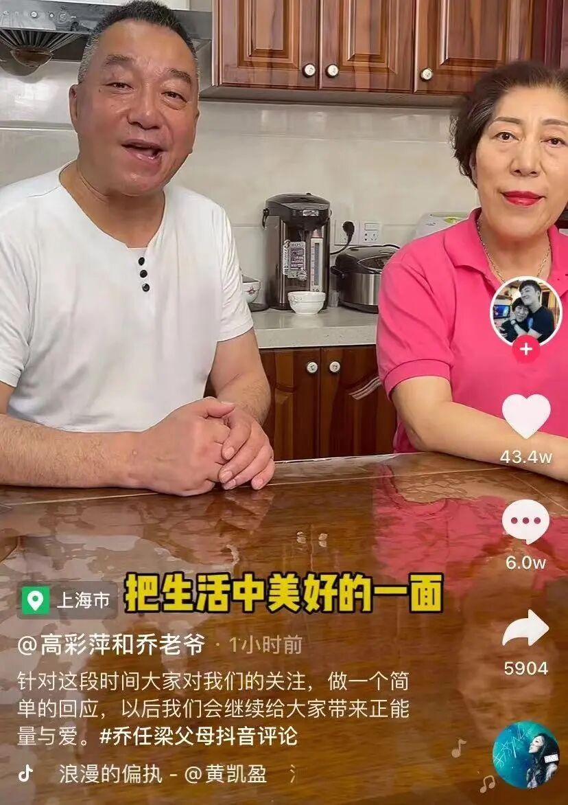 2019年,乔爸爸和乔妈妈才开通了账号。第一,因为许多乔任梁的粉丝很关心二老的生活情况,第二,他们想把孩子的品牌延续下去。