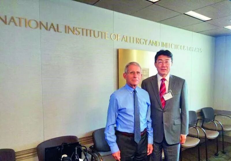 ·2017年9月27日,高福访问美国国立变态反应和传染病研究所,与所长安东尼·福奇(左)举行会谈。
