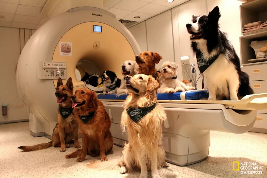 等待进行核磁共振成像扫描的狗狗们,金毛、拉布拉多、边牧——几乎构成了犬界的智商第一梯队。