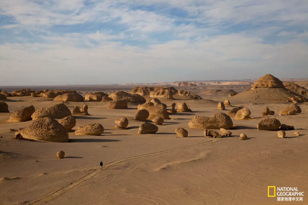 风沙把鲸之谷露出地面的石头雕琢成奇异的形状,埃及人称之为泥狮或“踞坐的狮身人面像”