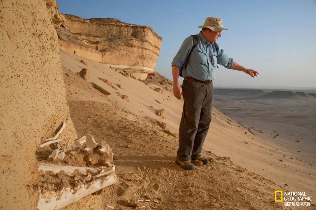 埃及法尤姆省(Fayoum),开罗西南150公里,已是日落的时分。美国密歇根大学古脊椎生物学家Philip Gingerich,站在这片叫做“鲸之谷”的沙漠中,看到了那具史前龙王鲸的脊柱。他身旁的沙地里散落着鲨鱼牙齿、海胆刺、巨型鲶鱼化石。