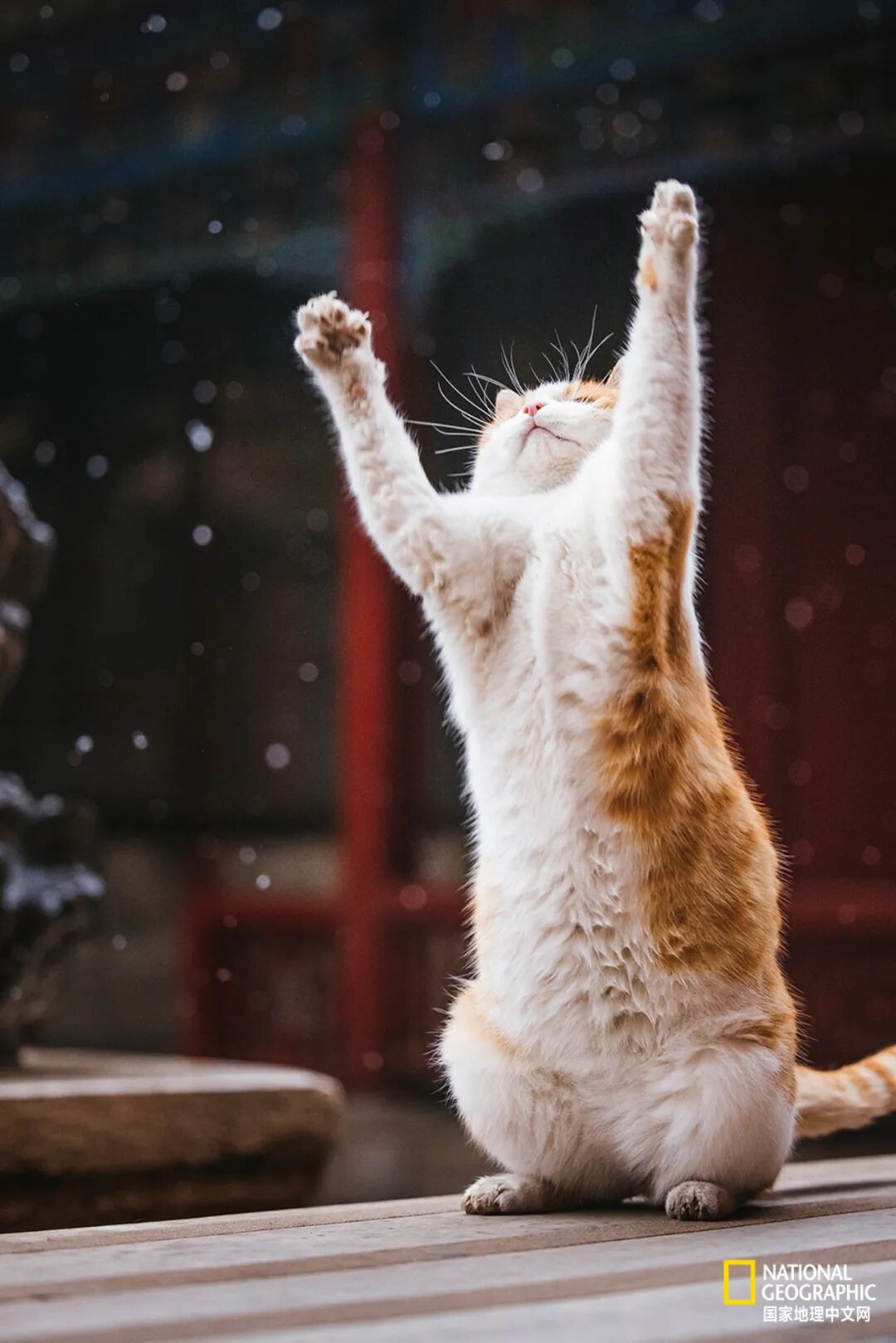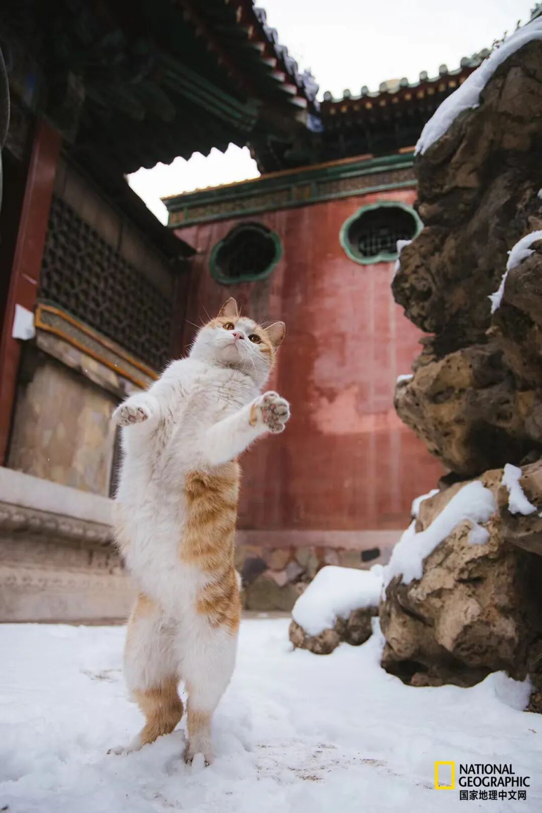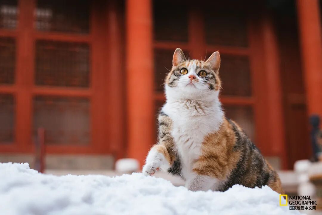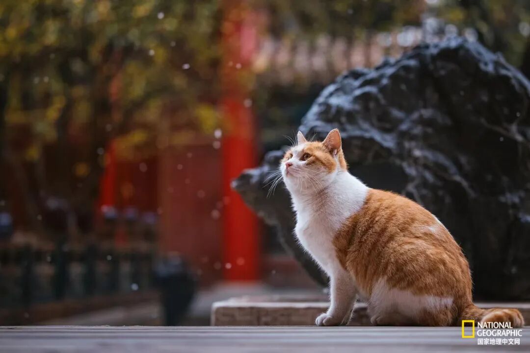 今年北京初雪中的故宫猫,“吉祥”