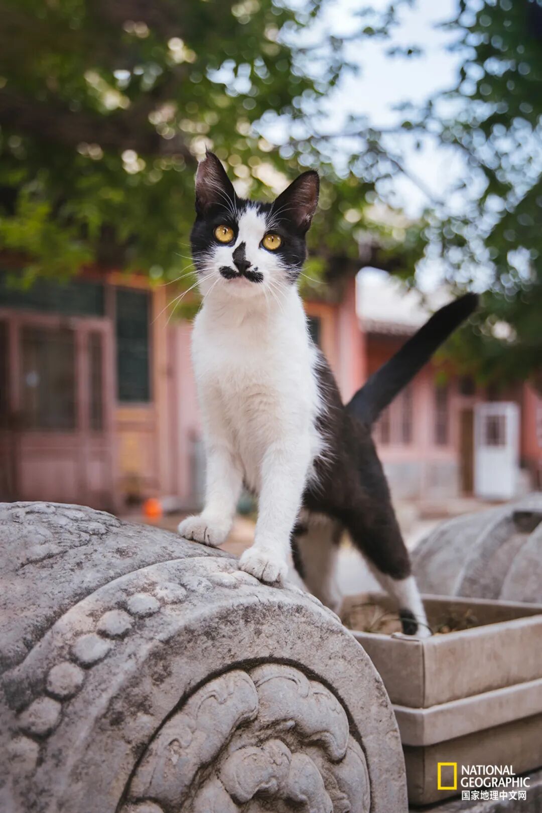 奉先(雄性)的名字来源于奉先殿,它是一只非常自信的猫咪,每天都爱翘着尾巴到处巡逻。