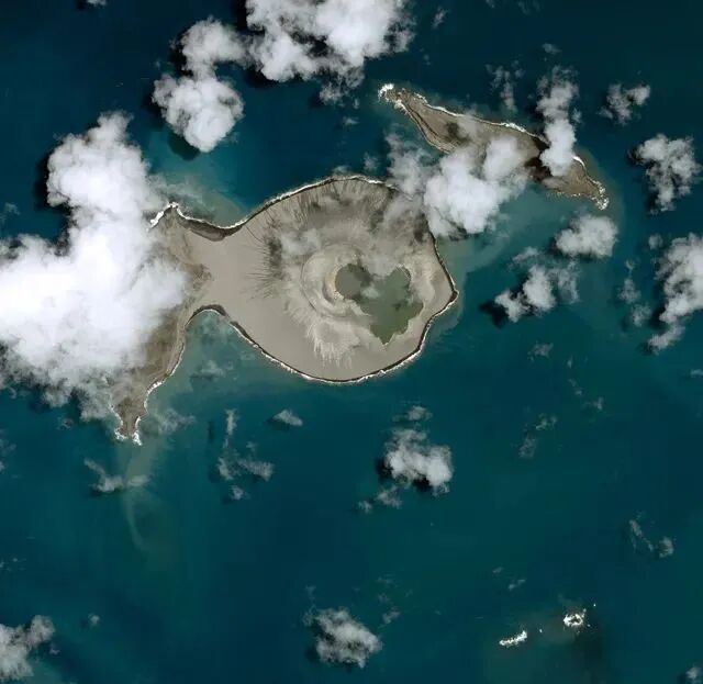 1月15日清晨,汤加Hunga Tonga-Hunga Ha'apai海底的火山发生剧烈爆发,这里距离汤加首都努库阿洛法以北约65公里处。瞬时之间,空气被炸开,狂泻的火山碎屑流几乎把整座火山岛吞没殆尽;冲击波及半个地球,甚至传到了1.6万公里外的英国。