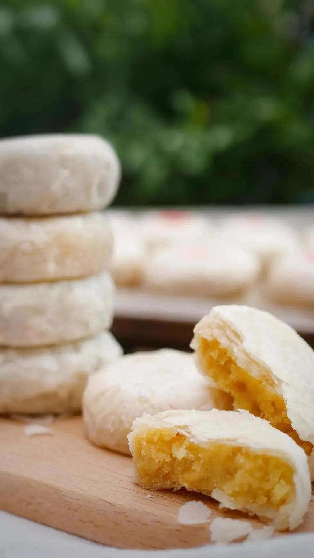 标志性的“硬皮”——糖浆皮,是广式月饼区分于其他流派的独门神技。面粉、糖浆、枧水、和油揉制成的饼皮香酥软糯。