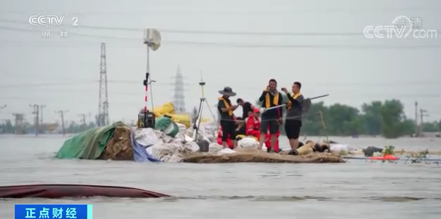记者来到绕阳河堤坝发生溃口处的现场,河水将堤坝分成了南北两岸,现场风力非常大,不仅给救援队员带来体感上的不适,还把很多河里的水从沙袋的缝隙中吹到了堤坝上,所以堤坝上坑坑洼洼、水量很多,给抢险救援工作带来了很大难度。![]()