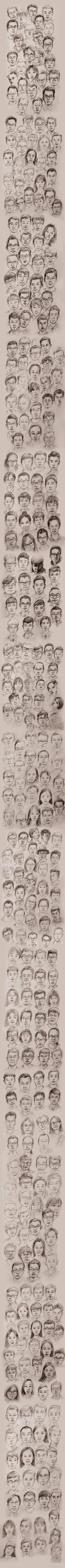 在创作期间,除了正常上班,罗利把所有的休息时间都用在了创作这幅画上。每天5点半回到宿舍之后,往往要创作到凌晨。因为连续作画,罗利的颈椎都出现了问题,有时候不得不贴满膏药。最终历时22天,罗利完成了这幅肖像速写长卷。