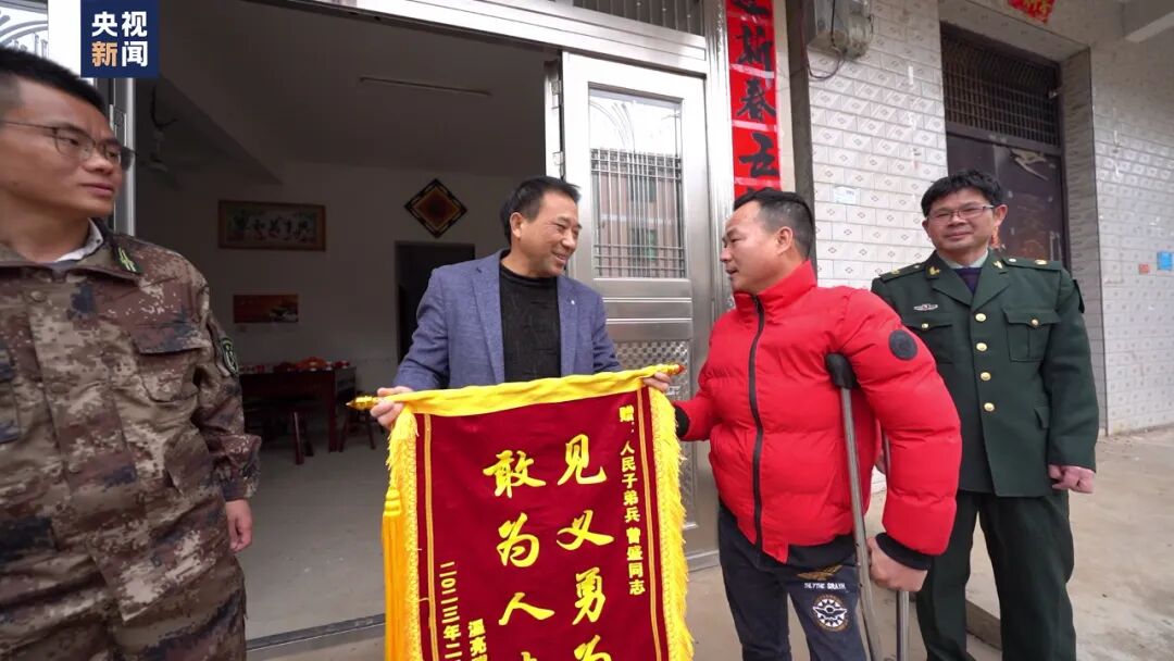 亲自把锦旗送到曾盛父母手中