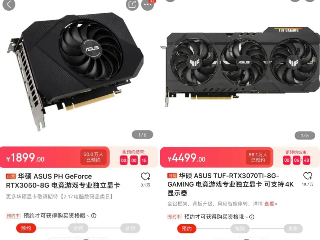 供应端方面,30系新显卡上架后产能不足;需求端方面,挖矿潮快速井喷。于是,几十万人抢显卡的奇观,出现了。王逸告诉我们,在京东上架的几款原价显卡均需要抢购才能买到,预约人数多时超过50万,抢购数额却只有一张。