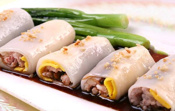 跟潮汕肠粉不同,香港的肠粉是广式肠粉改良而来,在米制的肠粉皮里面包着肉片、鱼片、虾仁等各种各样的食材,配上秘制的酱油,味鲜、爽滑、口感独特,回味无穷!