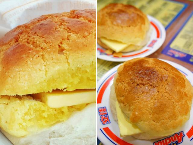 将新鲜出炉的菠萝包夹上冰冷的牛油,牛油被菠萝包的热力影响而熔化在包身的中间位置,而包身会被熔化的牛油变成金黄色,酥脆的包身配合香浓的牛油,吃下去会有一种恍若天堂的小确幸!