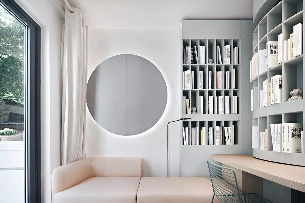 设计师梁穗明还给客厅用上了最近最火的“莫兰迪配色”,这种偏奶油的灰绿色调看上去非常高级,“其实改造这个房子更多的难点,在于对业主的精神建设。他们原本已经有一个很好的家,我们希望保证他们的生活品质。选择这个配色是因为它饱和度低,不艳丽,很纯很舒服。”