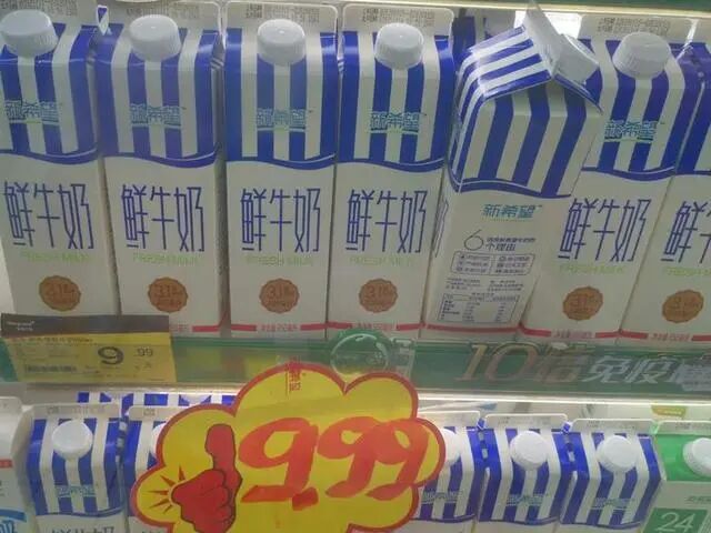 在华润万家900~1000毫升的大盒装鲜奶中,新希望给出的价格是9.99元950毫升。