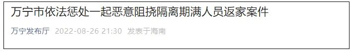 万宁市疫情防控指挥部提醒广大市民,被隔离人员结束隔离后返家进行居家隔离是落实防疫政策和规定的重要举措,返家人员合法权益受国家法律法规保护。恶意阻挠隔离期满人员返家属于违法行为,一经发现,市公安机关将依法严格惩处。