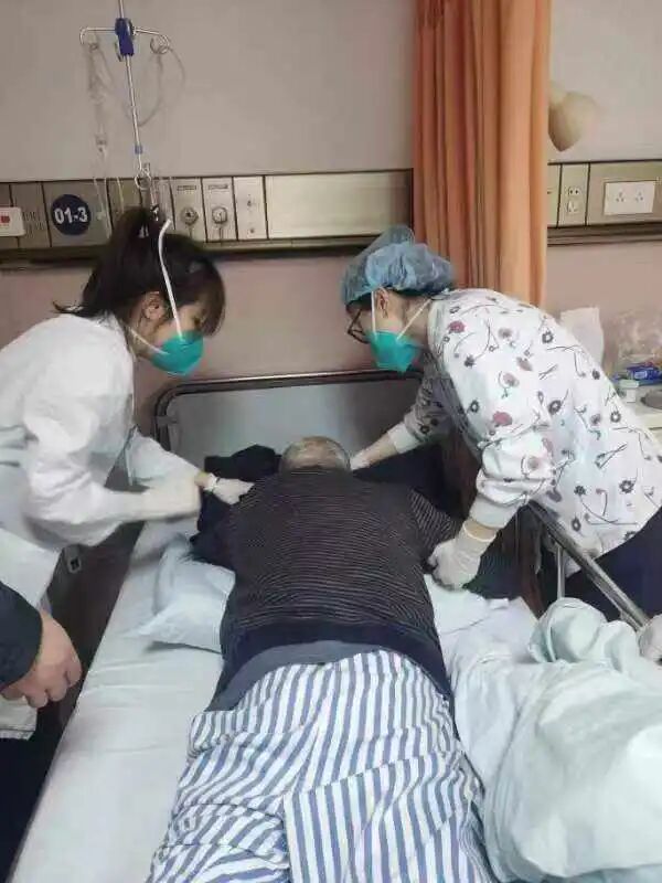 为了帮助具有重症高危因素等的新冠患者更好地通气,浙大邵逸夫医院组建了一支“俯卧位通气”服务队,防止这些患者转为危重症。目前,这支队伍为医院近700位新冠患者进行俯卧位通气指导和服务。为迎战感染“高峰”,浙江大学医学院附属邵逸夫医院腾挪空间,整合资源,设置新冠重症病房作为急诊与重症监护室间的过渡,目前收治了近700位新冠患者,一眼望去,躺在病床上的大多都是老年人,不少都在吸氧治疗,有些沉沉睡去,病房里显得很安静。“多数患者送诊时都是胸闷气急、呼吸窘迫,低血氧,需要给氧治疗,存在肺部发炎,少部分是重度肺炎。”浙大邵逸夫医院康复治疗师朱小莹科护士长说,患者中基本都是高龄老人,八九十岁者居多,甚至还有百岁老人。很多患者入院时,血氧饱和度不到95,呼吸急促,心率高达一百二三。“如果不及时干预,很快就会发展成危重症,要进重症监护室。” 吴肖清说,“这些患者中,有一半需要进行俯卧位通气治疗。”《新型冠状病毒肺炎诊疗方案(试行第九版)》指出,具有重症高危因素、病情进展较快的普通型,重型和危重型患者,应当给予规范的俯卧位治疗。简单来说,俯卧位就是趴着。趴着能促进背部肺泡“复活”、改善气血交换、提高血氧饱和度、促进痰液排出。正是因为这个姿势,浙大邵逸夫医院这支由专业护士和康复治疗师组成的“俯卧位通气”服务队也被称为“趴趴队”。“趴着”是一种最为简单、安全、经济且有效的呼吸治疗方式。“为一位患者完成这样的治疗,我们需要一组4人。” 浙大邵逸夫医院护理副院长庄一渝介绍,完整的一套操作要评估患者情况、摆体位、照顾好患者身上的氧气管道,以及观察患者的面色和生命体征变化等。1月3日上午,吴肖清和同组的同事一起为一位80多岁的大伯进行俯卧位治疗。大伯送到病房时,氧饱和度只有92,心率达到120,伴有胸闷气急。“大伯,您脖颈这里有不舒服吗?您手臂放过来,慢慢吸气,太快了,太快了,慢点,对,就这样慢慢的吸。”吴肖清弯腰,几乎是趴在大伯耳边,边帮他调整体位,边为他调整姿势。在此之前, 几位同事一起帮这位患者翻身、调整卧姿。“有些患者能听清指令,可以自己翻身。也有像这位大伯这样的,行动比较缓慢,没有办法很好地配合我们的指令,还是需要几个人一起,给他翻身。”一般来说,一次俯卧位治疗需要持续两个小时,但多数患者无法坚持,只能俯卧半小时或者一小时后,就由“趴趴队”队员们再来改变一次姿势。经过一段时间的俯卧位治疗后,这位大伯的情况有明显改善,氧饱和度很快就恢复到95以上,呼吸状态也慢慢平稳。目前,浙大邵逸夫医院两个院区“趴趴队”总共有30人。“我们通过这样的治疗和干预,希望帮助这些患者改善呼吸状况,避免从轻症发展成重症。” 庄一渝表示。肝肾功能弱,很多药没法用
