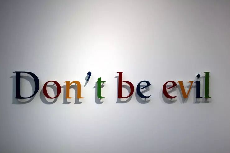 根据维基百科,don't be evil 是Google员工Paul Buchheit在2000年初或2001年关于企业价值观的会议上首先提出了这一座右铭,一直到2015年10月,Google母公司Alphabet同意了集团座右铭:do the right thing(做正确的事)。2018年4月,don't be evil 这句座右铭被公司删除。