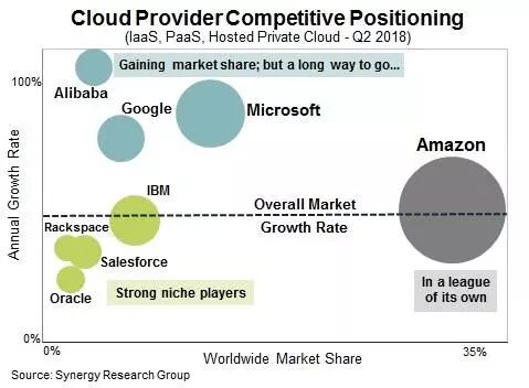 2018Q2数据显示,云基础设施服务的支出比2017年Q2增长了50%,这与第一季度的增长率基本一致。