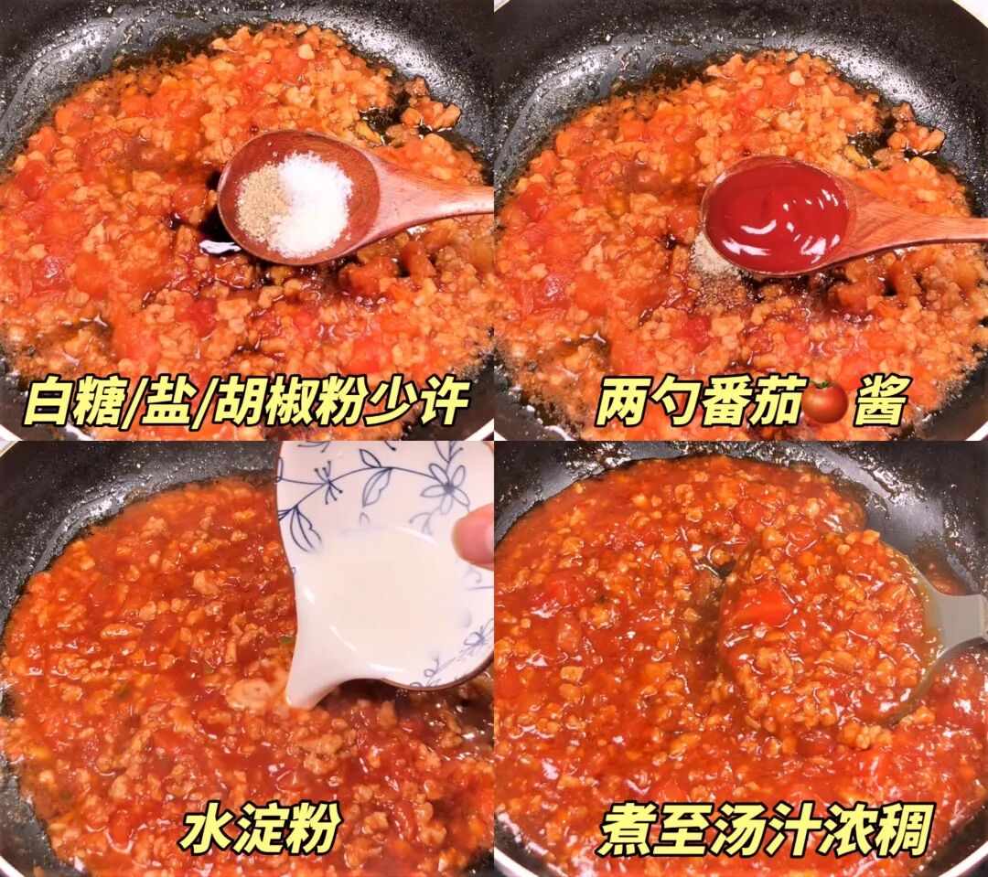 3. 调味:加1勺料酒、1勺生抽、1勺蚝油,少许盐、白糖、胡椒粉,加2勺番茄酱,翻炒均匀后,加水淀粉勾芡,煮至浓稠即可关火。