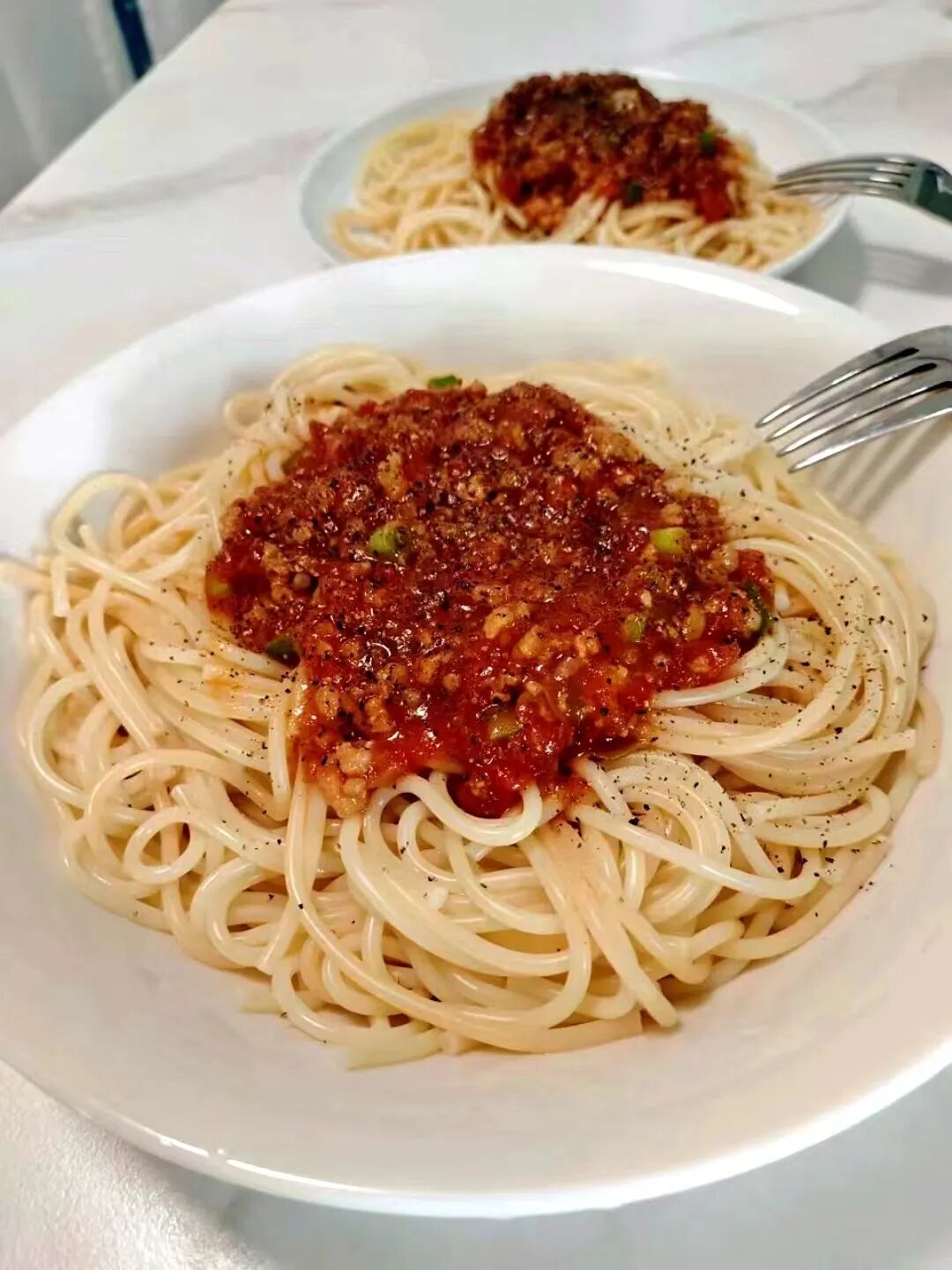 “这个番茄肉酱面真的是太太好吃了,吃了十几年的配方❗️每次做都要吃2碗,酱香浓郁,孩子们特爱吃!