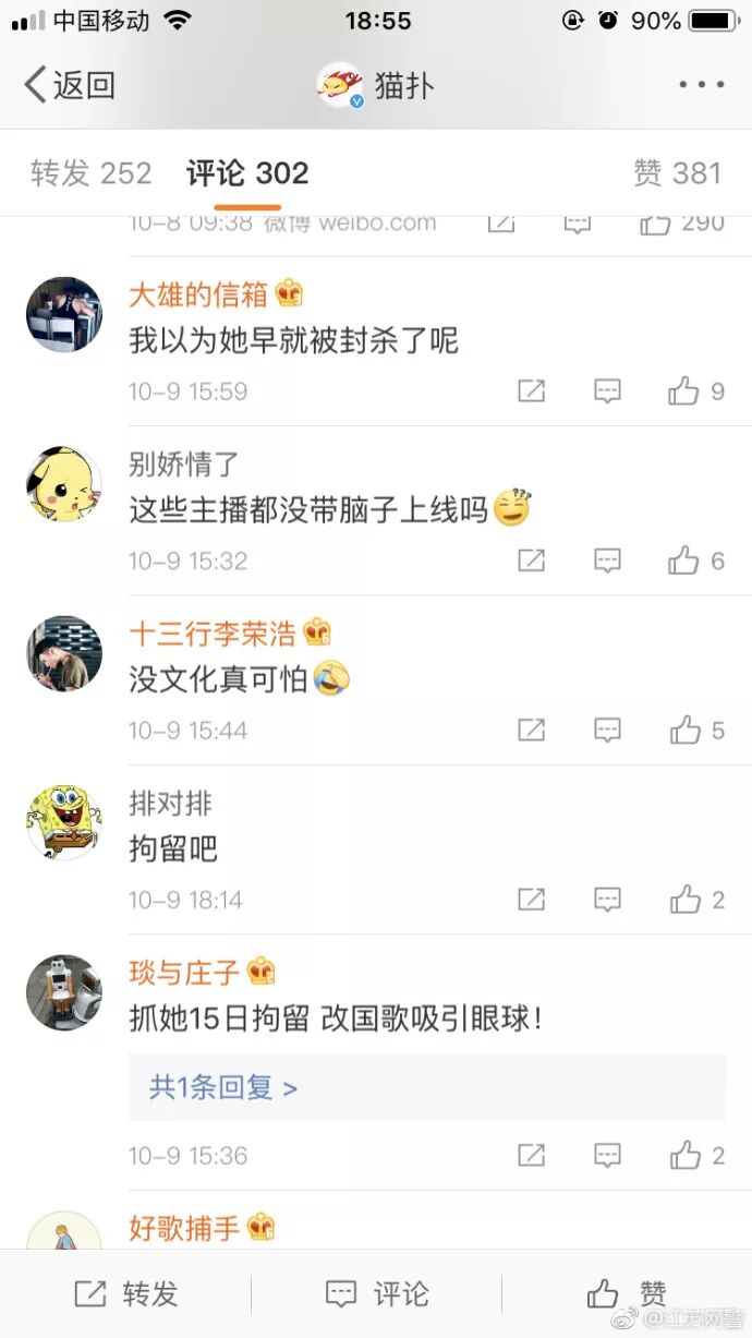 以上评论来自@江苏网警