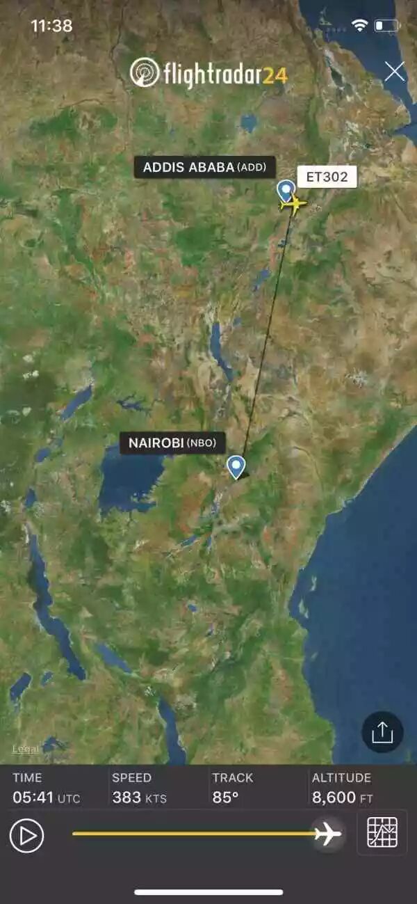 埃塞俄比亚航空公司上午11时公布,3月10日从亚的斯亚贝巴飞往内罗毕的ET 302号航班今天在Bishoftu(Debre Zeit)附近发生了一起事故。 注册号为ET-AVJ的B-737-800MAX型飞机于当地时间上午8时38分从亚的斯亚贝巴、博莱国际机场起飞,并于08:44分失去联系。目前搜索和救援行动正在进行中,事故原因待确认。