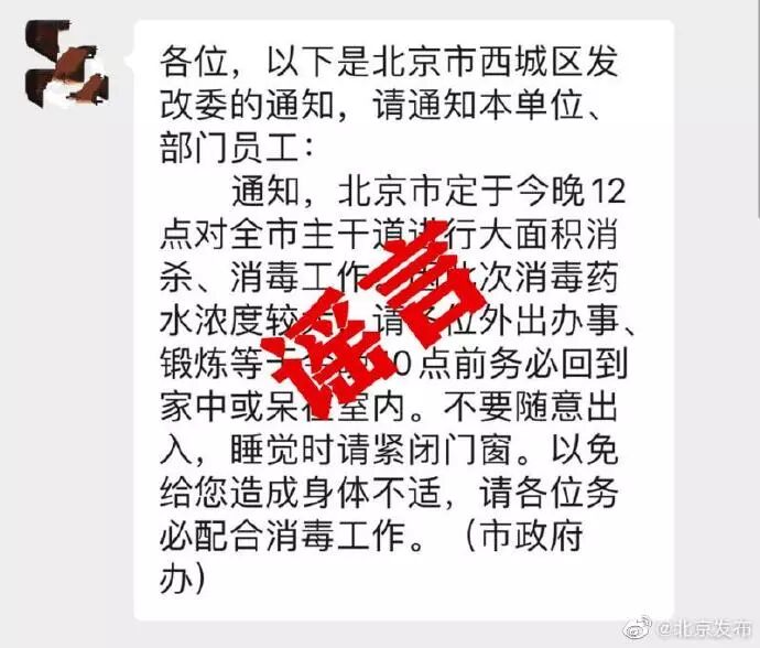 据@北京发布最新消息,网传“北京市2月10日晚12点对全市主干道进行大面积消杀、消毒工作”。经核实,此消息不属实,系谣言。