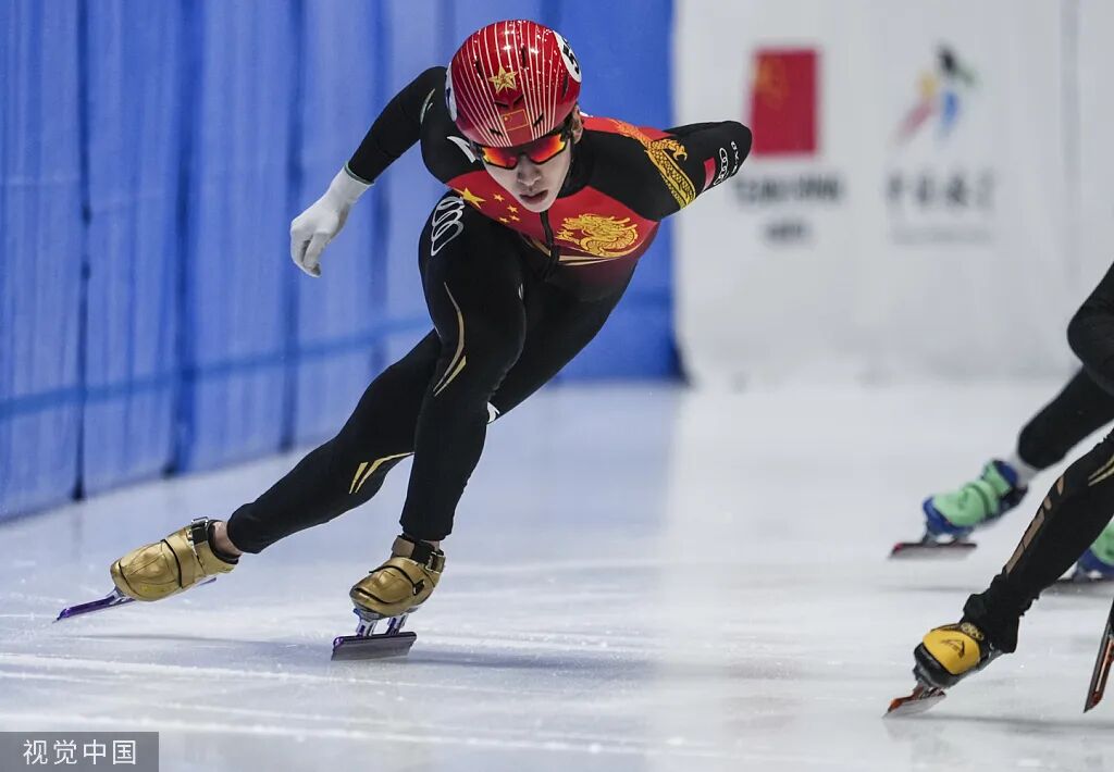 2022年1月13日至14日,短道速滑项目北京冬奥会选拔赛第二、第三站在北京首钢园进行。图为河北选手林孝埈在比赛中 图源:视觉中国