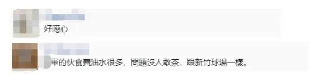 听闻这一消息,有岛内网友表示,“好恶心”;“台军的伙食费油水很多,问题没人敢查……”↓
