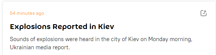 俄卫星社也称,据乌媒消息,基辅今早传出多声爆炸声