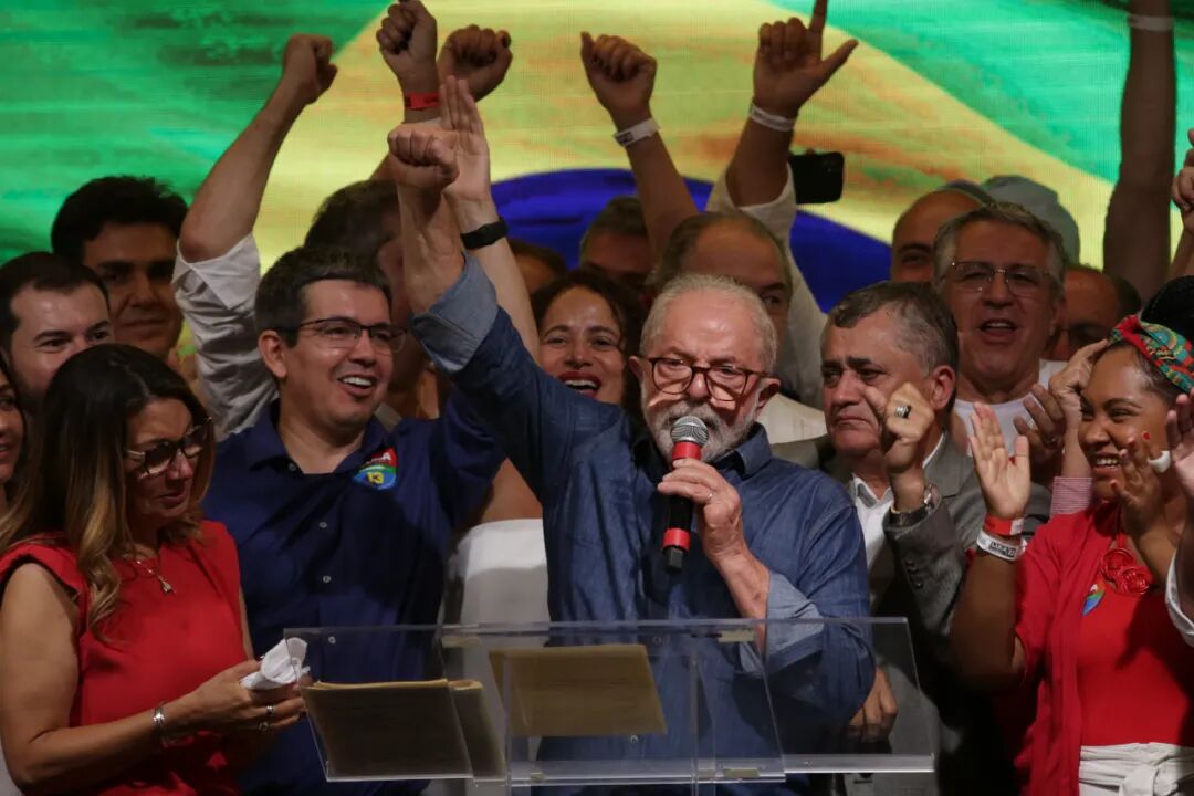 当地时间10月30日晚间,卢拉赢得选举后在巴西圣保罗发表演讲 图自澎湃影像