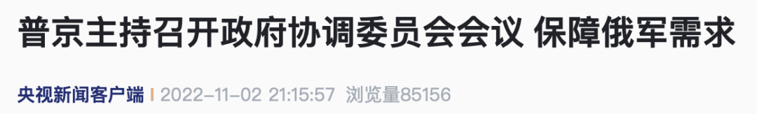 当地时间11月2日,俄罗斯总统普京主持召开了政府协调委员会视频会议,该委员会用于协调各政府部门以保障俄罗斯武装力量的需求。