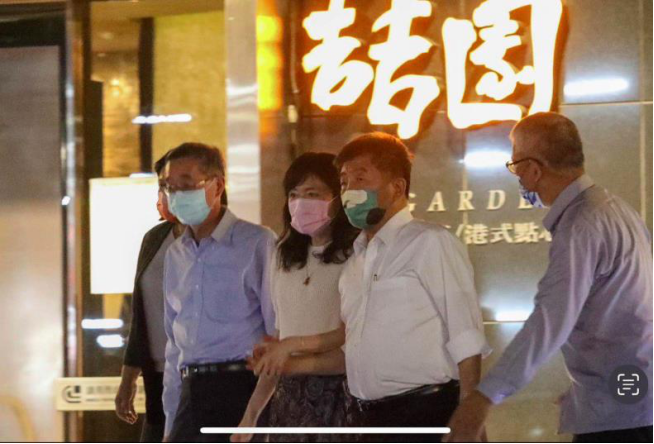 中时新闻网称,从画面中可以看到,陈时中在一走出餐厅大门时,就搂着一位身穿白色上衣的女性。图自中时新闻网