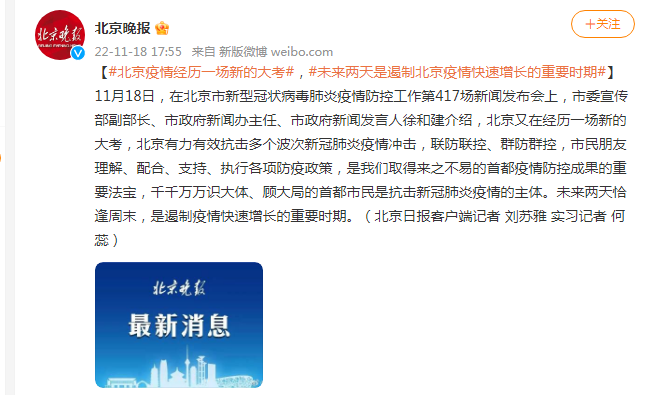 北京发布会:未来两天是遏制北京疫情快速增长的重要时期