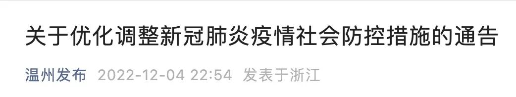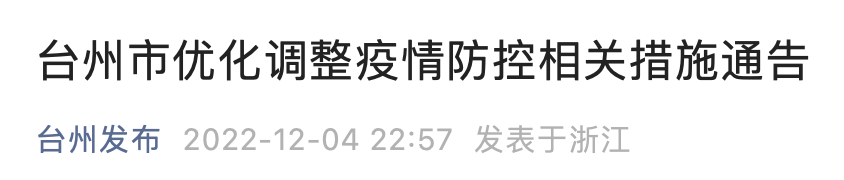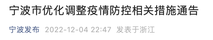 12月4日,宁波市发布优化调整疫情防控相关措施通告,全文如下: