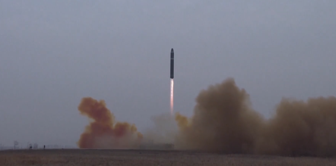 朝鲜中央电视台播放“火星-15”型洲际弹道导弹的试射画面。