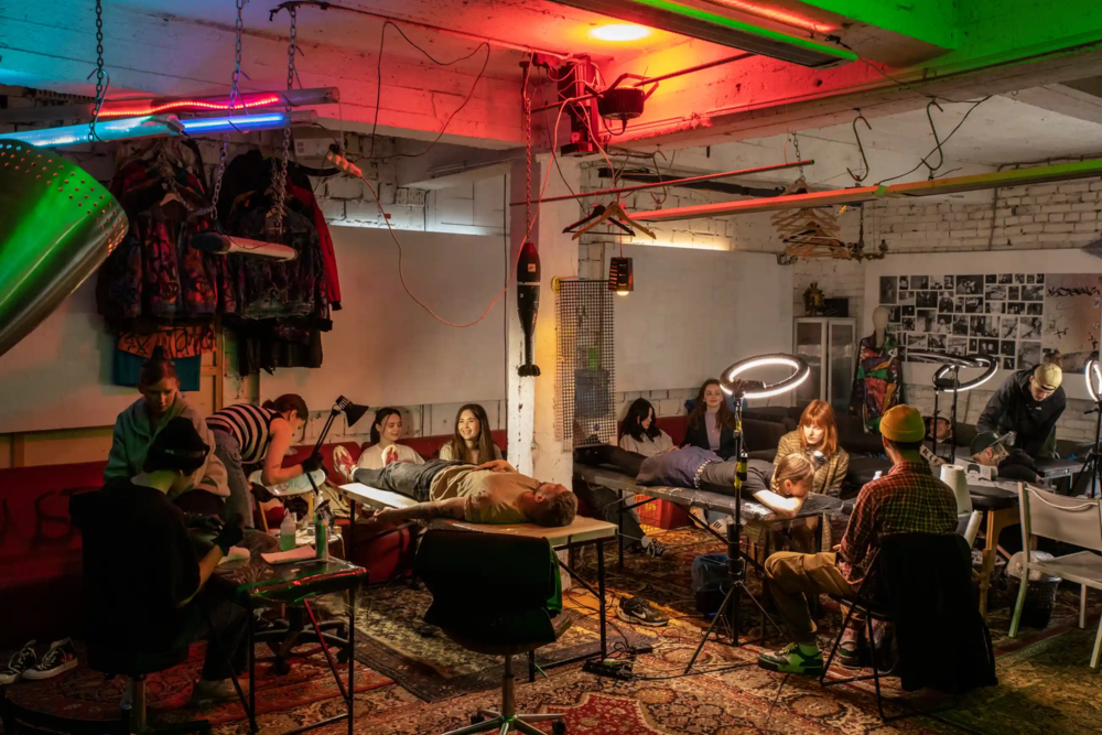 “面对搜索,城市里的一些游击队员会为了行动方便,找我掩盖文身。”文身师Valeriia Solonets说。