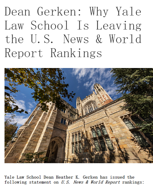美国两所最负盛名的法学院——耶鲁大学法学院与哈佛大学法学院退出了《美国新闻与世界报道》杂志(U.S. News& World Report,以下称“U.S News”)的法学院年度排名,其中有何内情?