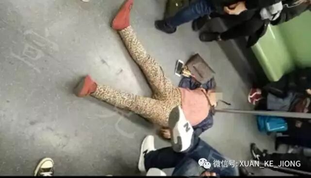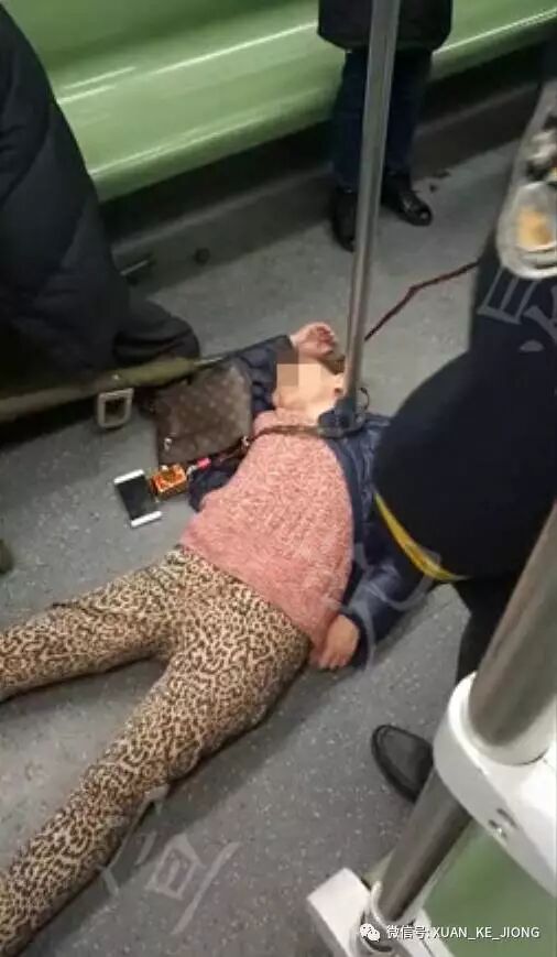 当时看到这名妇女仰面躺在地铁列车车厢内。
