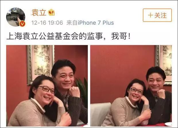 袁立在微博上发布了跟崔永元的合照,