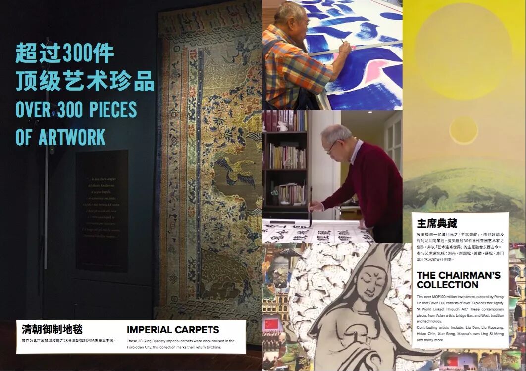 与澳门美高梅相比,美狮美高梅更加重视娱乐和艺术典藏的元素,美高梅中国控股有限公司财务高级副总裁及首席财务官王志琪把美狮美高梅定位为“高大上”。他说,“高”体现在“高科技”呈现娱乐内容;“大”体现在“大手笔”,收藏了300多件艺术珍品,其中包括28幅典藏珍品;“上”体现在用“上等原料”制成好的餐饮。