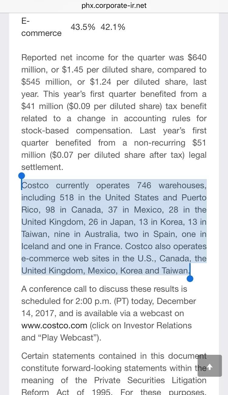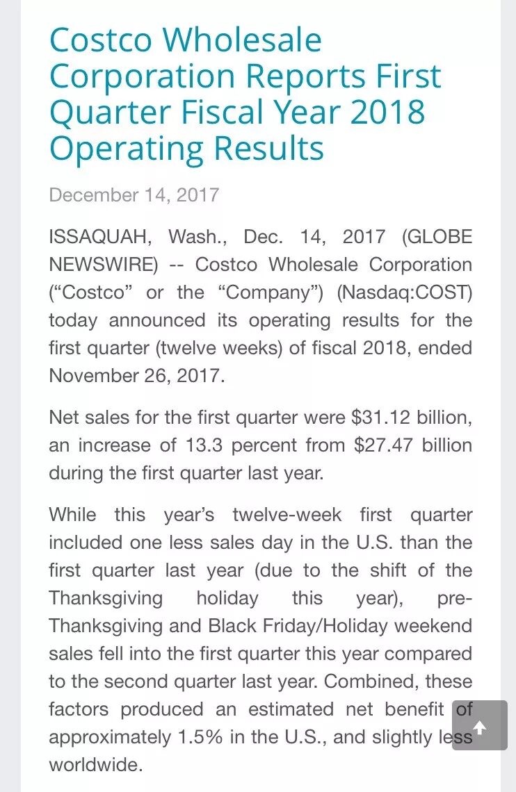 不错,Costco的确是在上个月发布了新季度财报,但里面是不是说了HONGQIAO PUDONG开店的事儿呢?