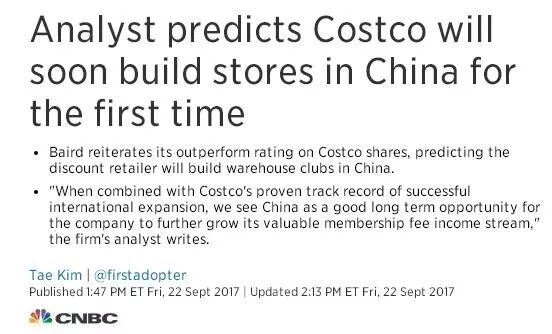 不过CNBC也不能完全算是歪果仁媒体,那就很奇怪了,为什么总有自媒体好事者那么勤快,一有风吹草动,不管有没有,统统先帮Costco开个店先呢?