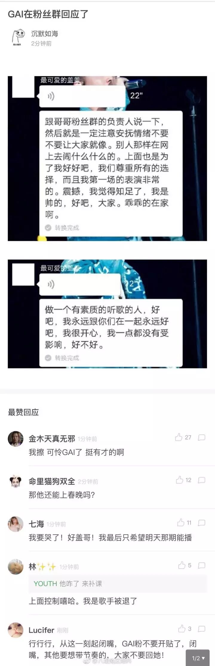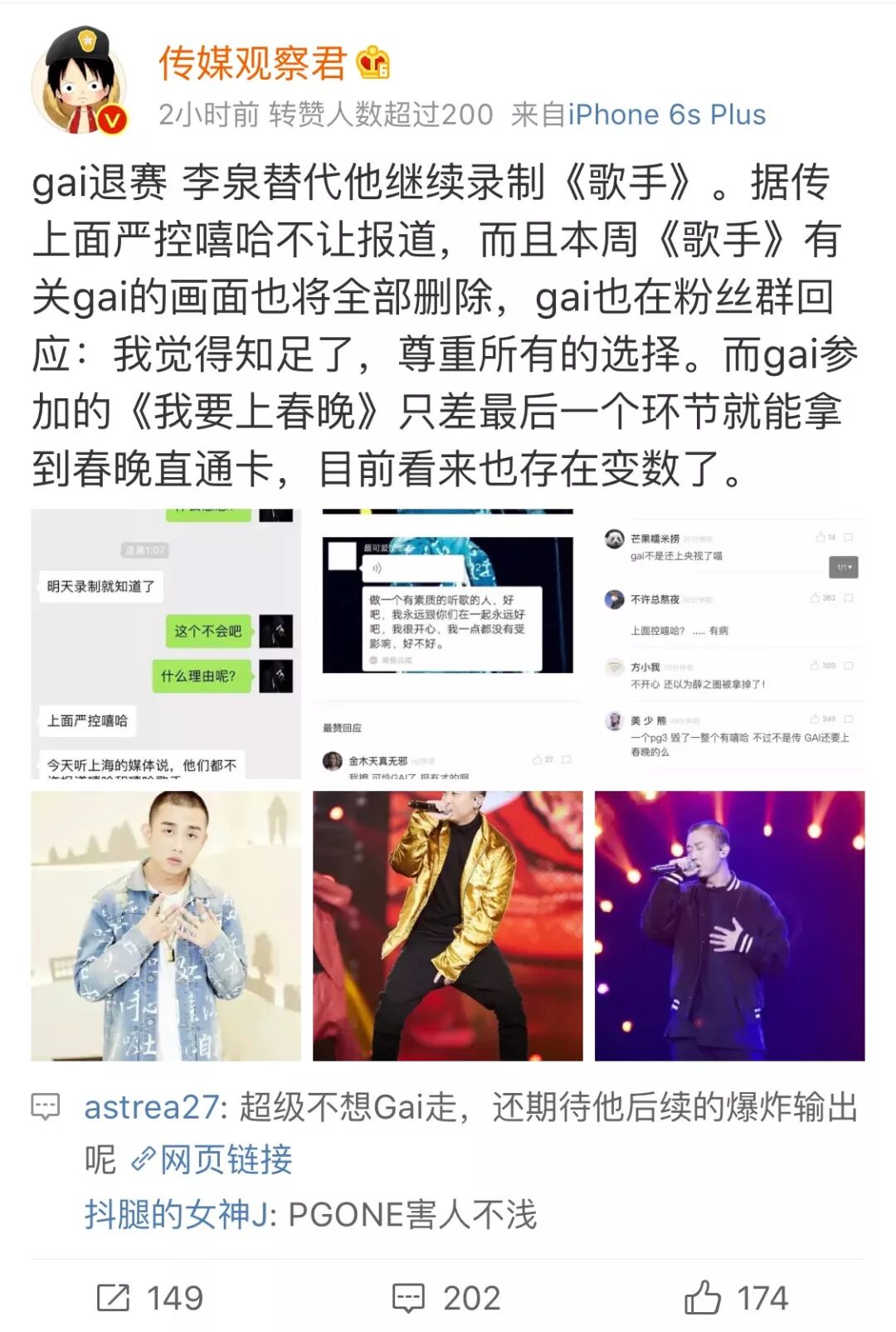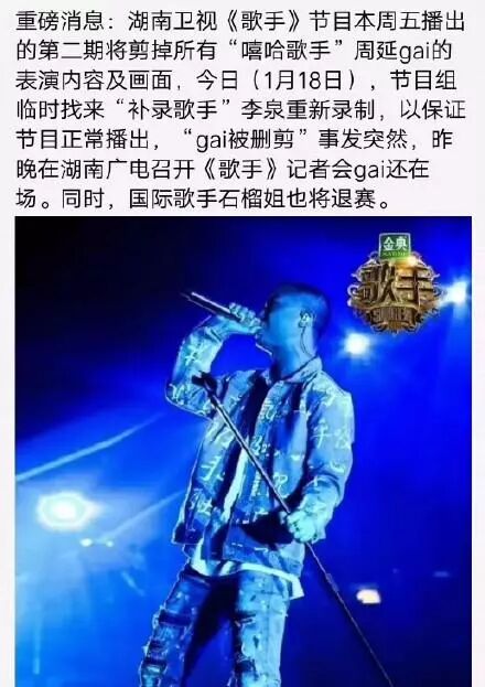 这次GAI被迫退赛,很有可能影响他将来的其他节目,比方说今年春晚。