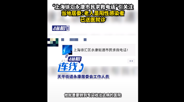 经解放日报·上观新闻记者核实,这段通话发生在4月12日中午,接听电话的徐汇区天平路街道永康居民区党总支书记张臻。致电的是居民于文明老先生,4月7日确诊新冠病毒阳性。