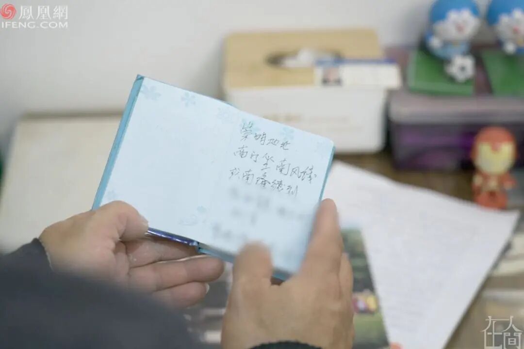 在老人生前的衣服里翻出来的笔记本上,上面清楚地写着郑华的手机号和住址,并注明这是自己的监护人,以防万一路上有意外,人家能看到。