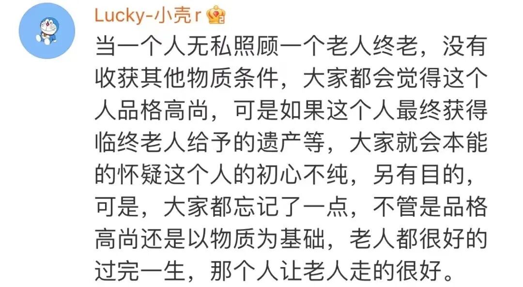 他仍然记得老人生前最后的嘱托:晚年自己要把握好,不要过早托付给孩子,人都是会变的,跟你感情不深的话,也不一定能照顾好你。