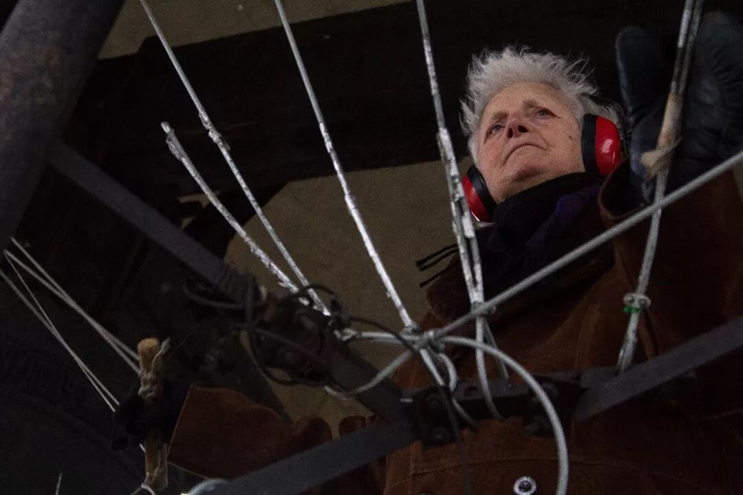 敲钟,并不像我们大多数人想象的,只需要一根绳子来回摇摆就可以。玛利亚至少要动用四到五根绳子,再配合脚底的踏板,通过四肢的协调控制大大小小的钟,才能完成一次20分钟的敲钟任务。