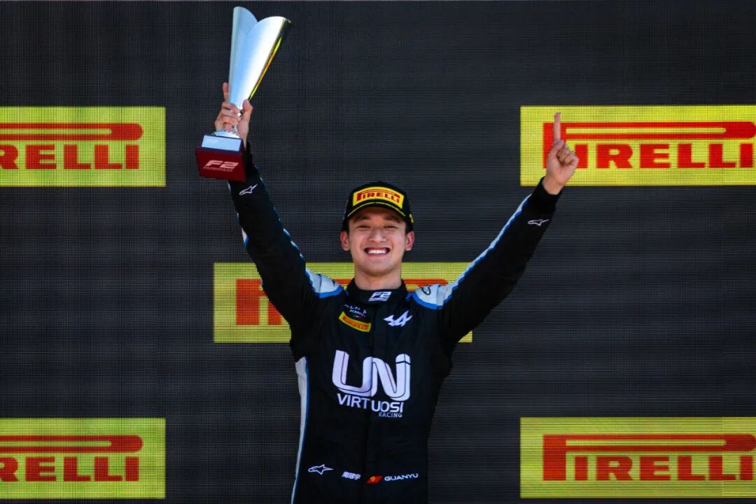 那时候,周冠宇21岁,处在一个标准的F1新秀年龄,他决定再战一年,将2021年当做最后一搏,“最重要的是不留遗憾”。开赛前,他回到亚洲参加了亚洲F3比赛获得冠军,累积起可观的超级驾照积分,这彰显了他的决心。“当时我们看了就知道,他是打算一定要进F1了。”叶飞说。2021年3月,新赛季首战巴林,周冠宇展现出绝佳状态。他排位赛中再获杆位,联想到去年首战杆位发车最后退赛的遗憾,他这一次改变策略,主动选择用硬胎起步、比赛中再换软胎乘胜追击。“这是一个反策略,因为F2一般前几排发车都是软胎,但我想赌一把。”周冠宇说。比赛后期,他的策略展现了极强竞争力,在还剩四圈时一路从第三超越对手到第二,然后在一次前三名的缠斗中脱颖而出,第一个冲过终点。这是他F2生涯的第一个正赛冠军。冲过终点后,他对着车载无线电话大喊:“好样的,谢谢兄弟们!”他爬出赛车后,挥舞双臂庆祝。领奖台上,即将开幕的F1正赛的红色LOGO醒目而耀眼。韩寒得知消息后,专门发了微博感慨,称这场比赛的成绩完全值得一个热搜。“了解赛车的朋友都会知道这有多不容易,(这是)中国车手最高光的时刻之一,他也一定会创造更多这样的时刻。”![]()