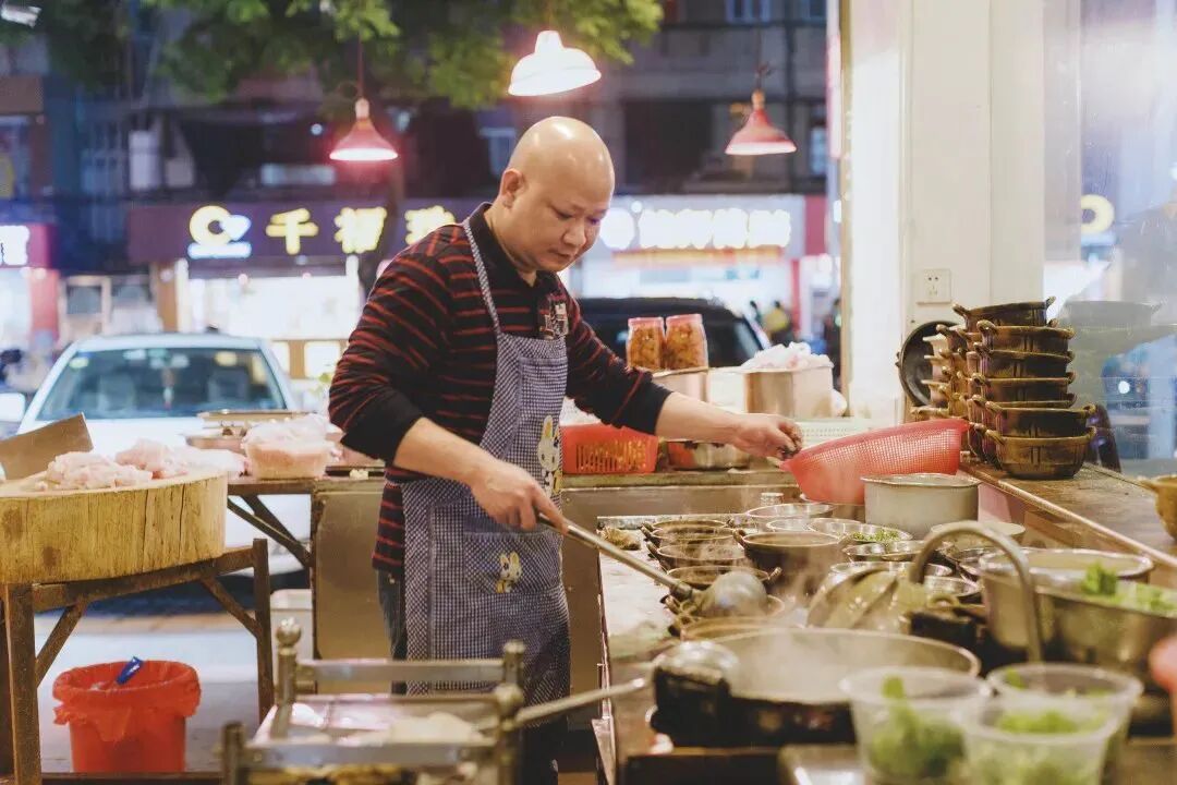 黄叔的摊子让我想起家乡的一个米线店。我读小学时,店主还只是在学校门口摆摊,一碗热气腾腾的米线只要 5 毛钱,上面浇着红油,盖着用热油炒过的碎肉末。冬日的早上,坐在矮板凳上吃完,我才觉得沉睡了一晚上的味蕾和身体被唤醒了。初中时,小摊变成了小店,价钱也涨到了 2 元,我却去了城区另外一边读初中,每到周末才能到店里解个馋。现在工作在外,过年回家也总会去店里吃上一碗,总觉得那碗米线温暖了我的整个冬天和年少的时光。